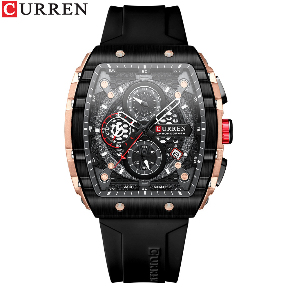 The Curren is a stylish and functional timepiece, protected by scratch-resistant hardlex material. The watch runs on precise quartz movement and offers chronograph functionality, including subdials for measuring seconds, minutes, and 1/10 seconds. Luminous hands enhance visibility in low-light conditions, and it even displays the day of the week. With a water resistance of up to 30 meters, it’s suitable for everyday wear. Plus, it comes in a leather box for that extra touch of elegance.
